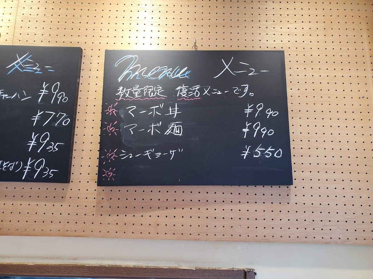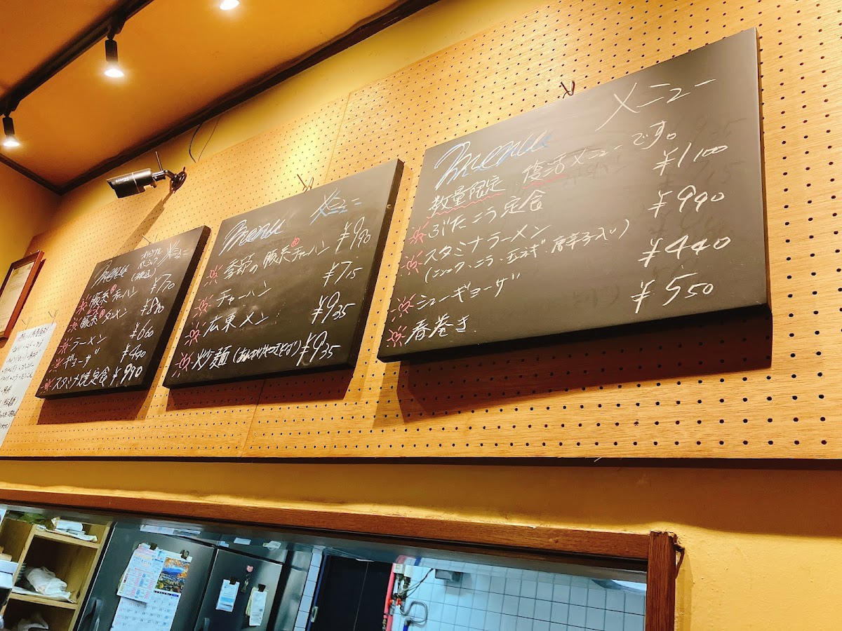 Kikuya Shokudo offers a diverse and satisfying menu that caters to a range of tastes with generous portions and hearty flavors. A must-try is their 焼き餃子, which stands out for its perfectly crispy exterior and juicy filling. For those craving something with a bit more flair, the ルースーチャーハン 大盛り is a deliciously spicy fried rice, while the ルースーチャーハンxl delivers an even larger portion for those with big appetites. The 冷やしルースー offers a refreshing and tangy twist on the classic, perfect for warm days. If you're in the mood for a comforting rice bowl, the マーボー丼 brings bold, savory flavors, while the あんかけ 焼きそば presents a satisfying mix of crispy noodles and rich, savory sauce. The スタミナ焼定食 is ideal for those looking for a filling meal with a balance of protein and vegetables. For a classic favorite, the 普通のチャーハン delivers that homey, satisfying taste of fried rice done right. Each dish is well-crafted, making Kikuya Shokudo an excellent choice for anyone looking to enjoy flavorful, comforting Japanese-style meals.